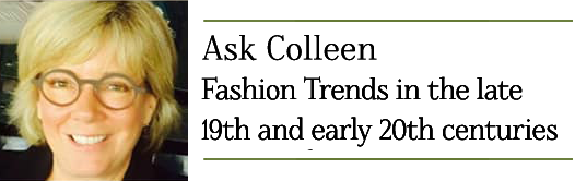 While I did all of the initial research for my Beneath the Alders series and for the first book in the series, The Innocent, I was greatly assisted in completing The Beleaguered and The Mending by the research skills of my good friend Colleen Mahoney, a pre-maturely retired librarian. For this newsletter, I asked Colleen questions about fashion trends in the Beneath the Alders Years.