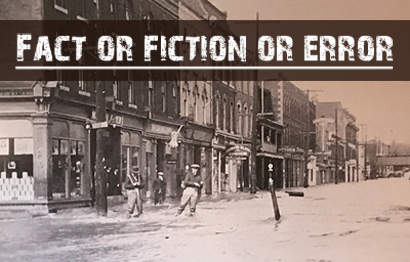 Image 1 – Fact or fiction or error image shows a portion of Brampton’s flooded Main Street (From Carve Restaurant, Brampton) early 1900s.