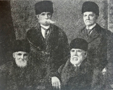 Jesse Perry and other curlers. Seated left to right, David Kirkwood; Wm Peaker; Standing W.S. Williamson, Jesse Perry. From the Brampton Centenary book, 1973