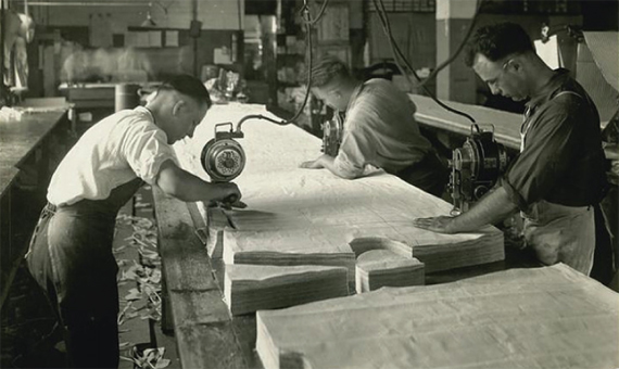 By the second half of the 16th century, gloves, stockings, shoes and hats were being mass produced and available for purchase off the peg, as it was sometimes called. In addition, collars and sleeves were being manufactured for use by those making bespoke shirts, blouses and dresses.